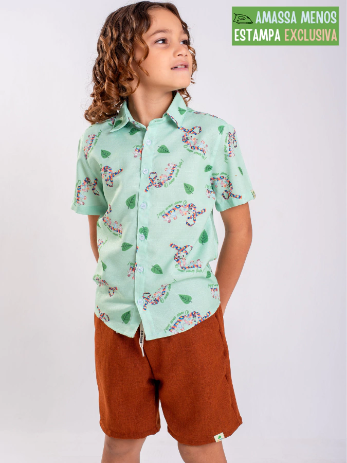 - Este conjunto vai bem em muitas ocasiões e os meninos amam! A camisa é ideal para os momentos de brincadeira e diversão, dando total liberdade e maior conforto térmico para os dias mais quentes.